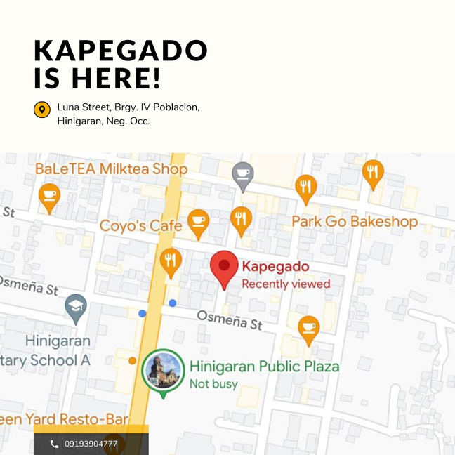 Conveniently located on Luna Street, Brgy IV Poblacion, Hinigaran, our humble café aims to provide a budget-friendly experience without compromising on quality and taste. We take pride in sourcing the finest local coffee beans, ensuring that each sip is an unforgettable experience.
